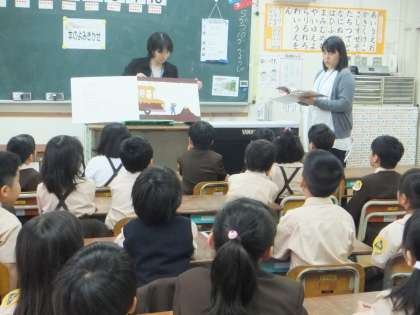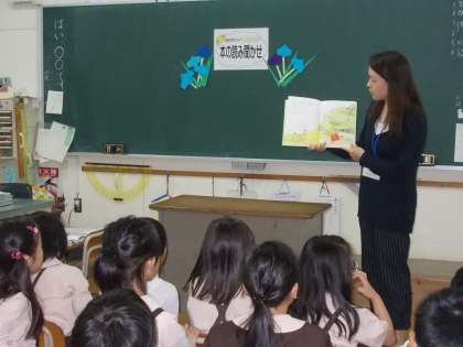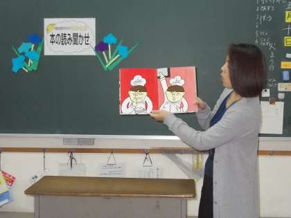 朝の読書タイムに、図書館支援ボランティア「お・ひ・さ・ま」のみなさんによる本の読み聞かせをしました。