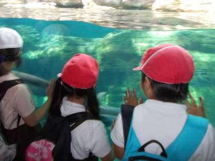 人気者のペンギンやイルカの前では行列になっています。