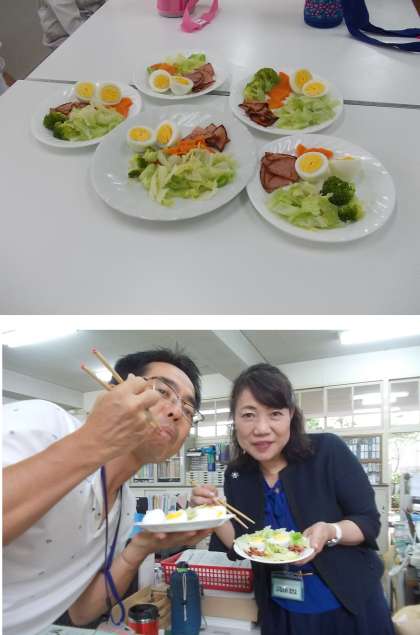 バッチリおいしいゆで野菜サラダとゆでたまごの出来上がり!