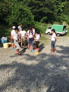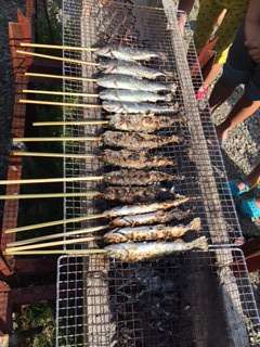 串に刺された魚を食べるのですが、中には、どこを食べていいのかわからない子がいました。これも経験ですね。