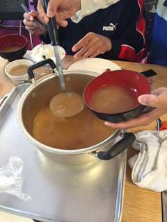 お味噌汁のおかわりを頼んでいます。ちなみに、具はありませんが……。