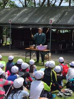 野外炊飯です。予定より30分早く、11時より始めます。宿のご主人の丁寧な説明をしっかり聞きます。
