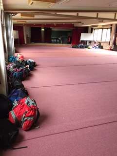 5階の大広間に大きな荷物を(男女に分けて)置きます。