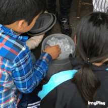 谷常さんオリジナルのたるに、アイスクリームの素と、氷をきちきちに入れます。