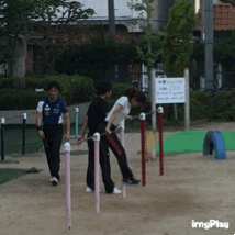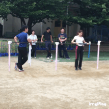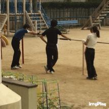 うちの職員は、熱心です。先輩職員から、鉄棒指導について学んでいます。