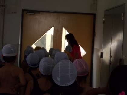 来週から始まるプールに向けて、着替えの練習、並び方の練習をしました。