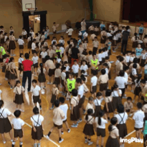 たてわり班全員で輪になります。「チッチッチッチ バリチッチ」の掛け声と同時に立つか座るかします。その後集会委員会が1〜10の数字を言います。立っている人数がその数字と一致したらラッキーです。ラッキーだった班は、その場で拍手をします。