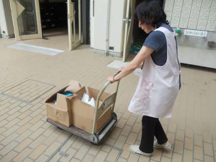 本校のトイレには、スリッパに履き替えて入ることになっています。そのスリッパは、定期的に職員が消毒液につけて、消毒しています。