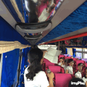 高速に入ったのでバスレクが始まりました。いつ、どこで、だれが、何をした。笑いが起こっています。