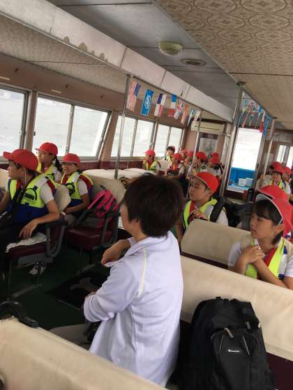 みんな静かに周りの景色を眺めています。島に近づいています。