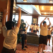 ロビーで朝の体操です。
