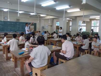 午後から(中学生が期末テストの最終日なので)大淀中学校で、6年生が模擬授業を受けました。