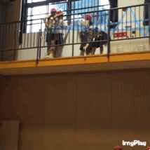 ひらひらペーパーです。講堂のギャラリーから、細長く切った紙を落とします。それを籠で受け取ります。結構難しいです