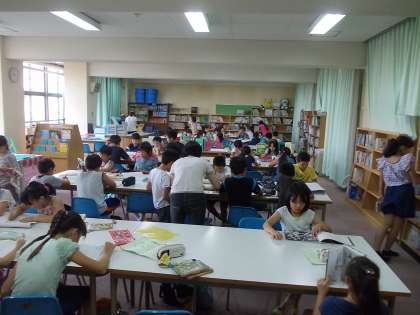 図書館開放は9時〜11時30分です。図書ボラのみなさんにもご協力いただいています。