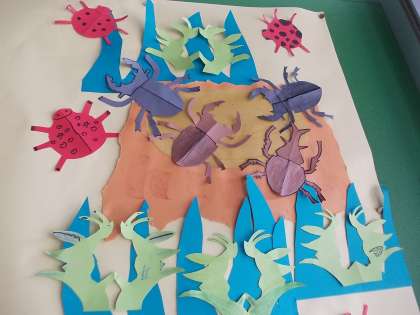 カブトムシやクワガタ、てんとうむしなどがいます。