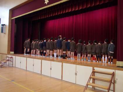 昨日行われた 北区代表選出予選大会で、オール中津リトルスターズが優勝したので、全校朝会で、表彰式が行われました。
