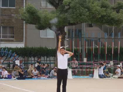 今年電子ピストルを購入しましたが、開会の合図だけは、従来のピストルで鳴らしました。(やっぱり迫力ありますよね)