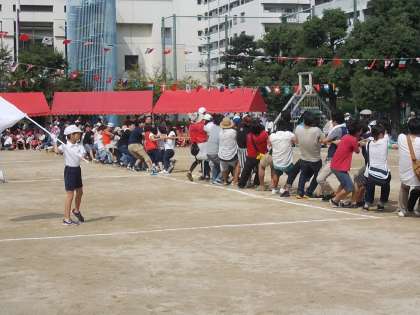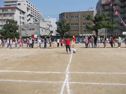 赤組先頭・遠藤会長、白組先頭・校長先生で入場しました。