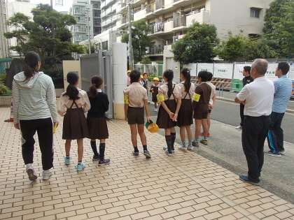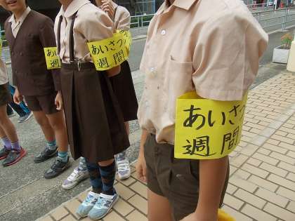 今週はあいさつ週間です。腕章をつけた運営・代表委員が校門に立って運動を盛り上げます。