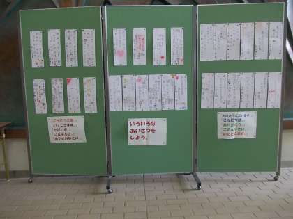 玄関ホールに、あいさつに関する標語(各クラス2〜3名ほど)が掲示されています。ご来校の際には是非ご覧くださいますようお願いします。