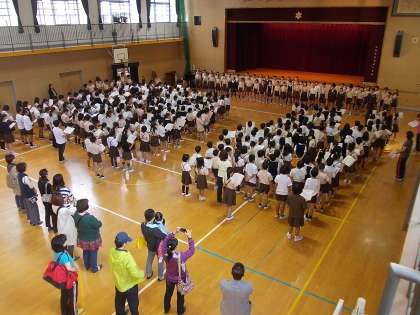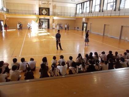 「音楽室で練習していたときよりも、ずっとずっと良かったです。あなたたちのいいところは元気で意欲的で、エネルギーに満ちあふれているところです。やりたいことは、一生懸命に練習し、(ソーラン節も良かったよ)ひたすら打ち込んでいく。だから、どんどん伸びていくのです。今日はいい表情で大きな声で、堂々とした態度でした。これからの後半も5年生のチームワークを大切に仲良く力を合わせて、いい学年になっていってくださいね。期待していますよ。」