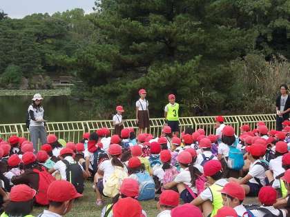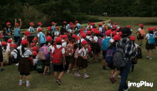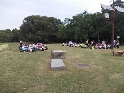 低学年が10時に到着し、トイレに行ってから全員並ぶので、オリエンテーリングの開会式が始まったのは10時15分ころでした。しかし、他の学校はまだ、どこも来ていないので、広い広場が貸切状態(!?)でした。