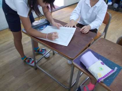 今週は健康週間でした。健康委員会が朝、授業が始まる前にキラキラ調べに行き、つめとハンカチとティッシュペーパーを調べに行きました。ハンカチをティッシュペーパーはすぐに使えるよう、『身につけている』ことが大切ですね。
