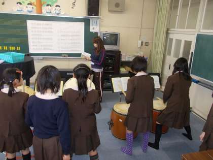 1学期はハンドベルを練習し、2学期は和太鼓に挑戦しました。練習を重ねる度に、力強い音で響くようになりました。