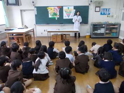 1時間目は食育についてのお話を聞きました。1日に350gの野菜が必要で、