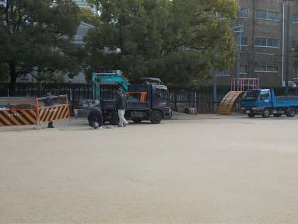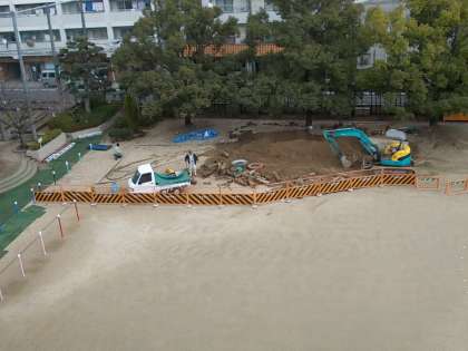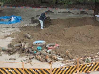 老朽化している土管のあるお山をフェンスで囲み、解体していきました。