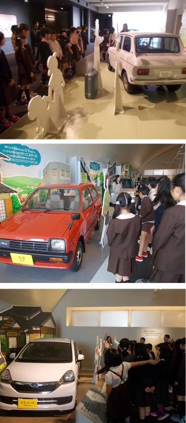 最初にダイハツの車の歴史について展示物を見ながら説明を聞きました。