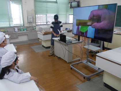 始めに和菓子についてのお話を聞き、和菓子作りを実演してみせていただきました