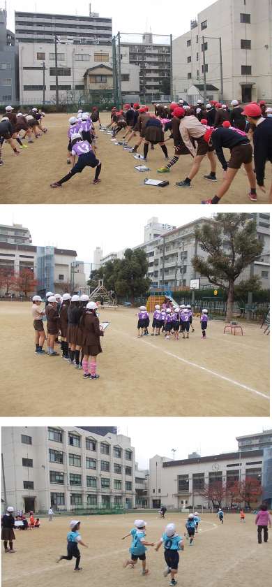 1年生も運動場10周(約1.1キロメートル)走ります。