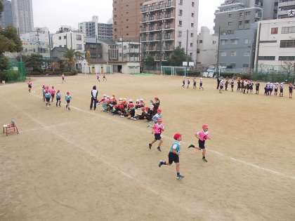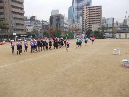 3年生は運動場15週(約1.6キロメートル)走ります。