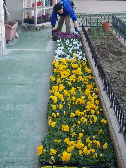 黄色パンジー300、白パンジー200、ビオララズベリー200です。