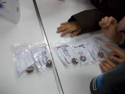 また、1年生がどんぐりでトトロをつくり、2年生にプレゼントしました。