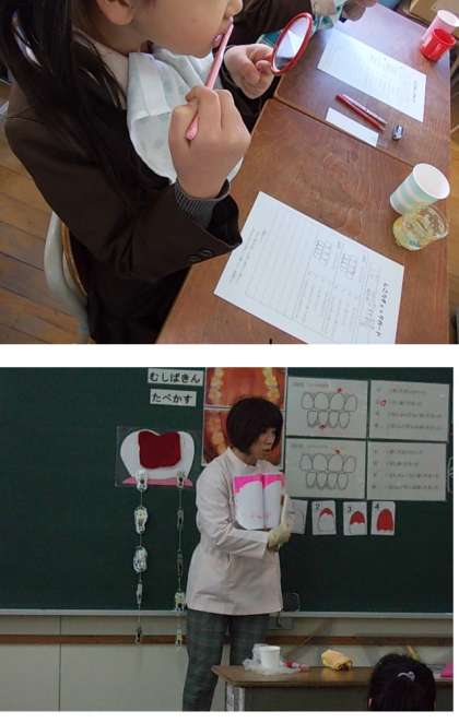 歯垢が付いている歯は、ざらざらしたり、ねばねばしたりしています。歯みがきをした後は、自分の舌でつるつるしていることを確かめるようにしましょうね。