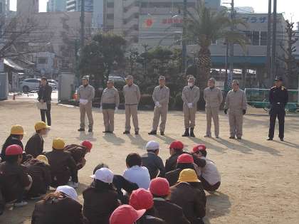 今年は、地域の防災リーダーの中から花咲中津地域活動協議会会長をはじめ、6名のかたにもお手伝いに来ていただきました。グレーの服を着ている方々です。