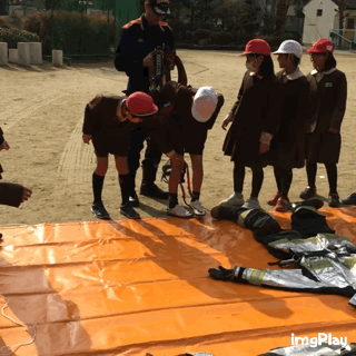 (1枚目)12年生は「消防服装着体験」をしました。