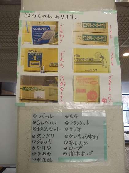 防災備品コーナーです。