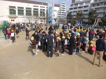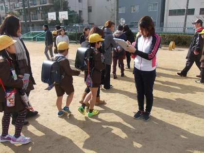 まず、6年生の兄姉がいる下級生が、6年生のところに移動し、保護者の方と一緒に担任が事前に集約した名簿をチェックして下校させました。