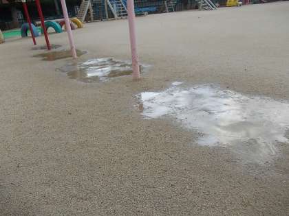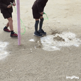 低学年の児童が楽しそうに、踏んで割ったり、手に取って見たりしていました。