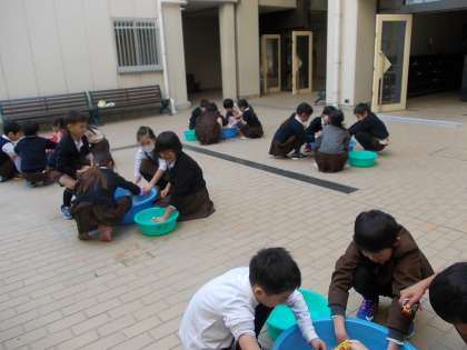 「水がつめたーい。」「ゴシゴシしたら痛い。」という声が上がっていました。