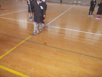 次は、日本けん玉協会・北摂支部の方に来ていただき(1年1組)、「けん玉」をする予定です。