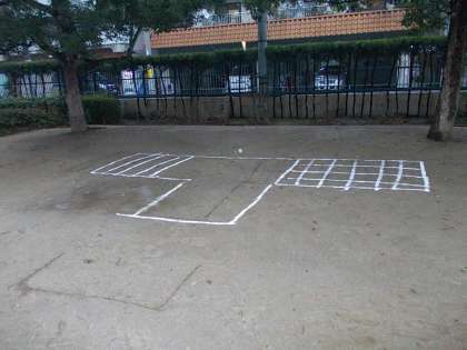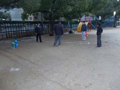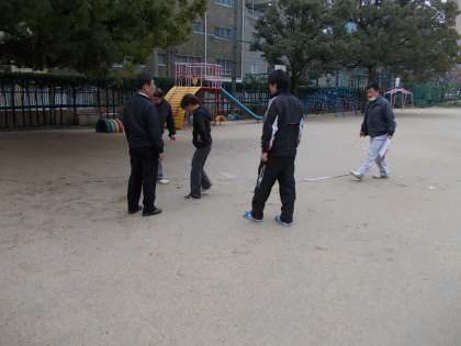 設置場所の確認をしました。安全地帯を確保しながら、クスノキとの距離も考えて、ラインを引いてみました。1日(土)に設置準備として基礎工事をします。5日(水)に「とりで」と「つりばし」が搬入されてきます。わくわくドキドキ楽しみです。