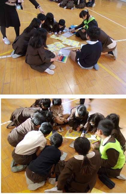 5年生のリーダーが中心になって、みんなで輪になって作業していました。微笑ましい光景です。