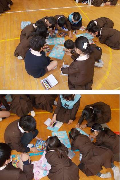 今日は、みんなで色鉛筆を持参し、仕上げの飾り付けをしました。