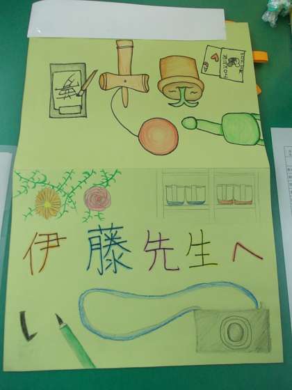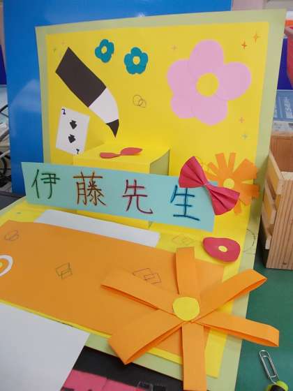 6年生から、お世話になった教職員に感謝のメッセージカードが渡されました。私(伊藤)には委員会やクラブ、授業での思い出などが書かれてありました。また、カードは飛び出すカードで、(だいぶ時間がかかったんだろうなあ)感謝の気持ちのいっぱいつまった様子が伝わってきました。