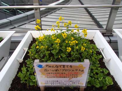 3年生と環境美化委員会が育て、先日出荷式を終えた「菜の花」が、大阪ステーションシティ「カリヨン広場」で飾られています。