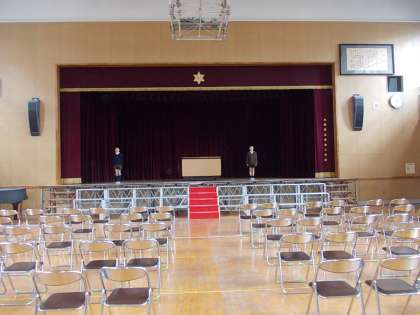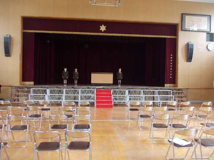修了式に学年から1人、頑張ったことなどを発表します。今日は初めての講堂での練習でした。